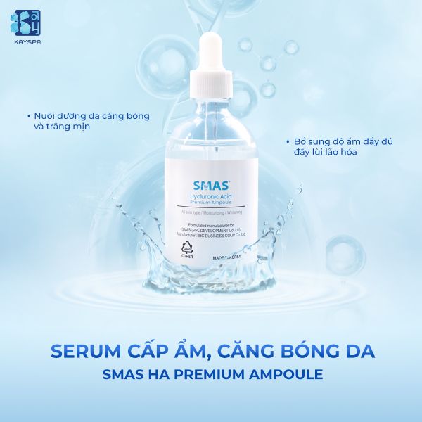 Tinh Chất Serum Cấp Nước Smas chứa Axit Hyaluronic giữ nước đến 1000 lần đồng thời dưỡng da, chống oxy hóa, ngăn ngừa lão hoá chắc chắn sẽ là lựa chọn đáng tin cậy cho phái đẹp hiện nay.